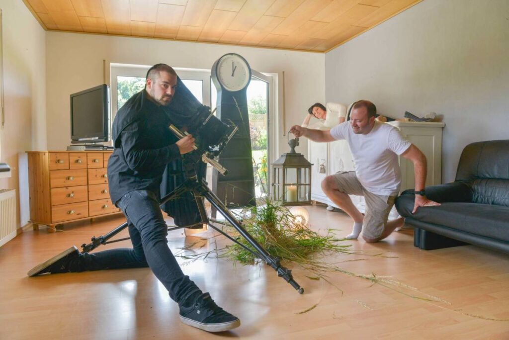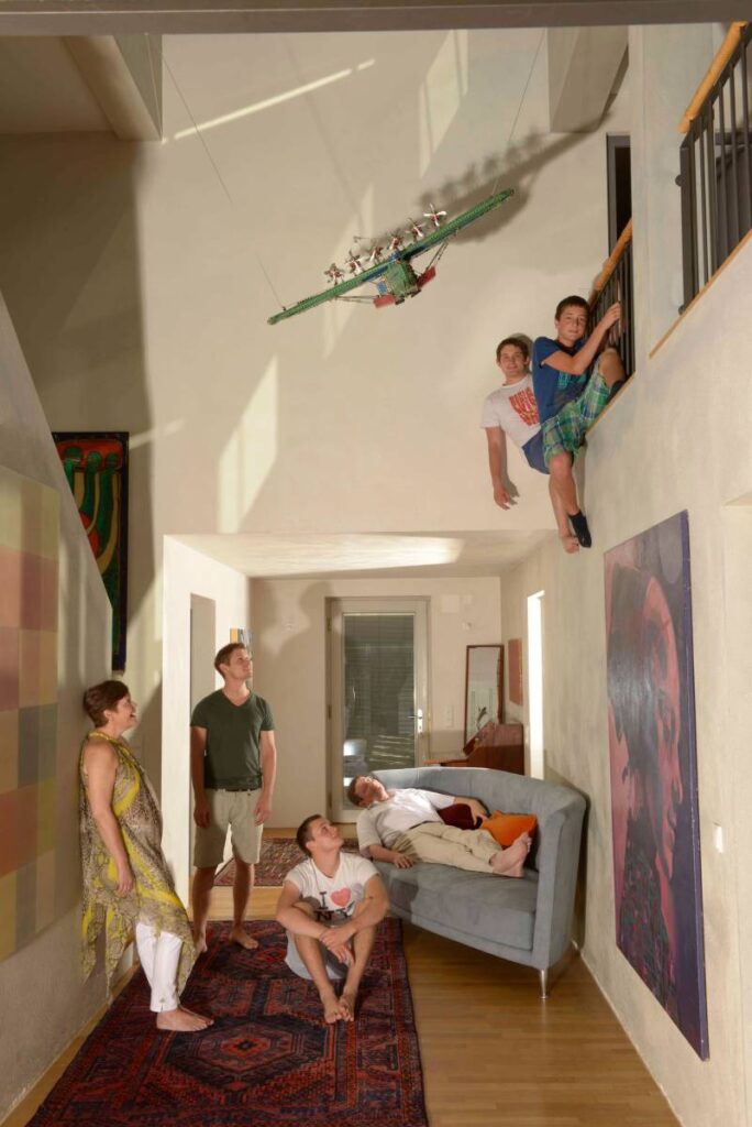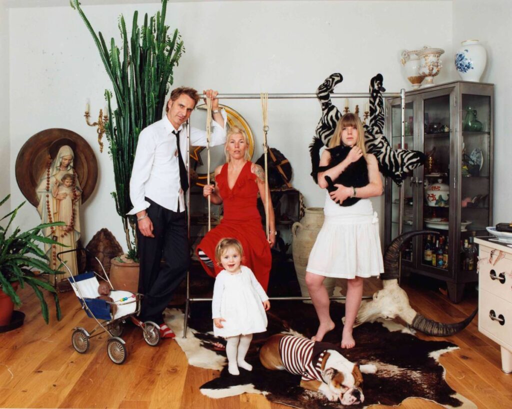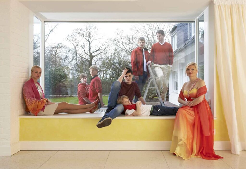Familia ist ein Projekt, an dem ich seit Jahren arbeite. Jedes Bild ist ein Ausschnitt einer ganz persönlichen biografischen Geschichte, die ich wiedergebe und manchmal breche, in dem ich mit Minimalinszenierungen eingreife. Besonders die Brüche ergeben Irritationen, die wir alle kennen. Denn wir alle kämpfen um verinnerlichte Ideale und Wünsche und wir reiben uns an der Unvollkommenheit des realen Lebens. Besonders spannend ist das Experimentieren auf der Grenze zwischen privatem und öffentlichem Raum. Es geht eben nicht nur um Repräsentation in einem formalen Sinn. Ethische und moralische Werte fließen mit ein, auch religiöse Zugehörigkeit, Fragen der Gemeinsamkeit, Konfliktfähigkeit, Verantwortung, Liebe und Toleranz werden über die Familie vermittelt. Über Generationen hinweg wird eine Familiengeschichte getragen, die manchmal zelebriert wird, manchmal nur zu erahnen ist und manchmal auch bewusst abgeschnitten wurde. Ob Chaos oder Ordnung, jede Familie ist für mich eine neue Herausforderung.